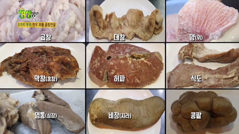곱창, 대창, 양, 막창, 허파, 식도, 염통, 비장, 콩팥 9가지가 들어가는 모둠 곱창전골로 이 집이 얼마나 맛이 좋은지 한 달 매출이 7천만 원이라고 하는데 손님들은 90분을 기다려서 먹을 수 있다는 답변을 할 정도로 맛있다고 합니다.