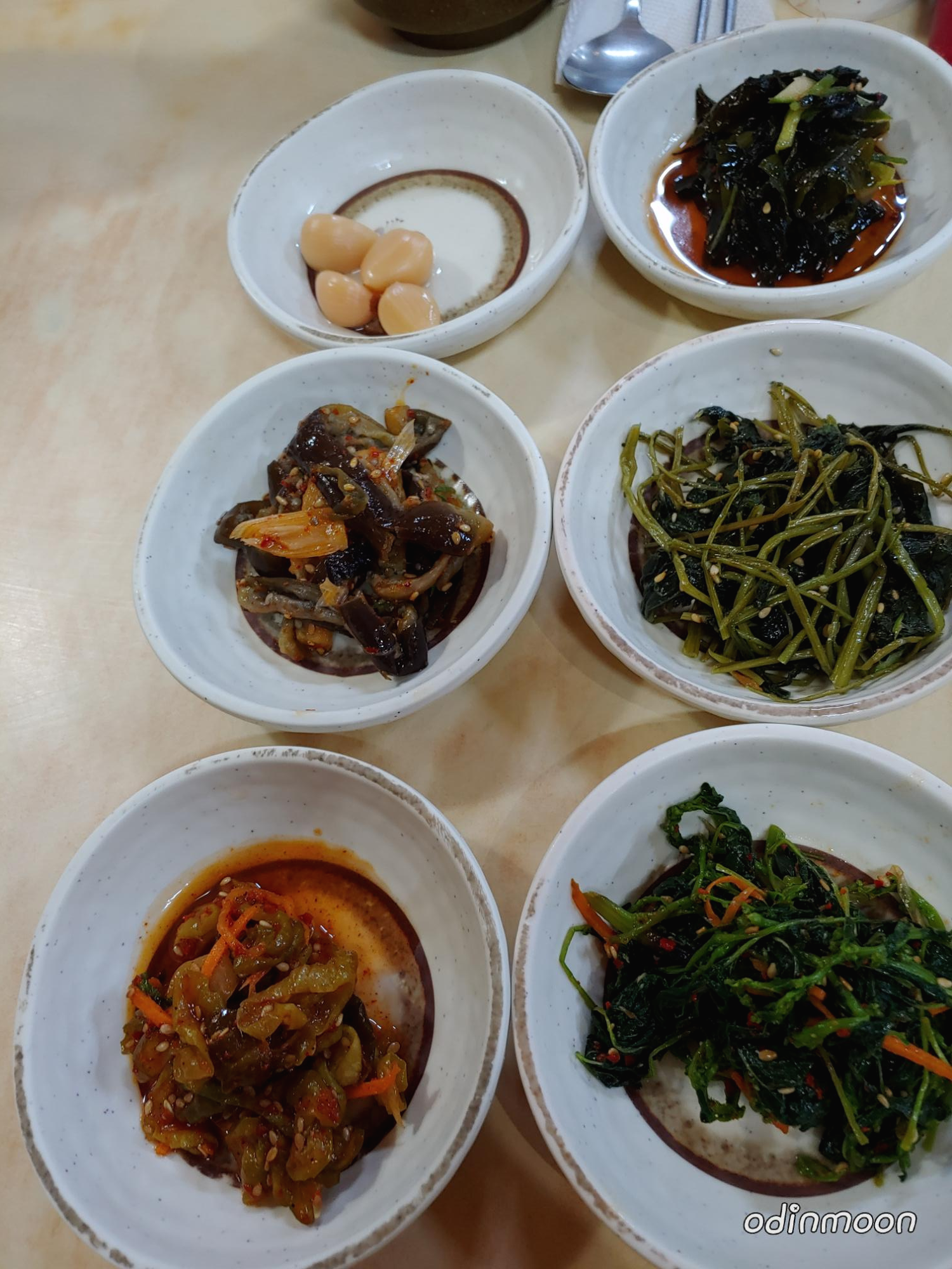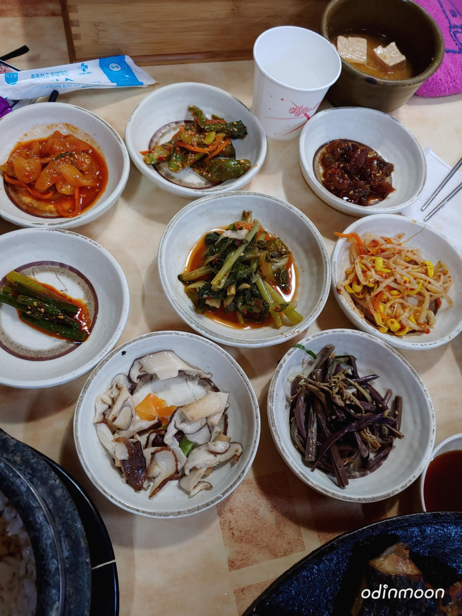 우리는 특 정식출시 2인(갈치,굴비,삼치,꽁치)+돌솥밥2 을 주문했다. 맛있는 반찬이 여러개 나왔다. 반찬을 계속 주워먹어서 몇번을 리필해서 먹었는지 모를 정도로 맛있었다. 마늘짱아치, 가지, 시금치. 오이짱아치, 미역무침, 콩나물무침, 버섯 등등 다 맛이 좋았다.